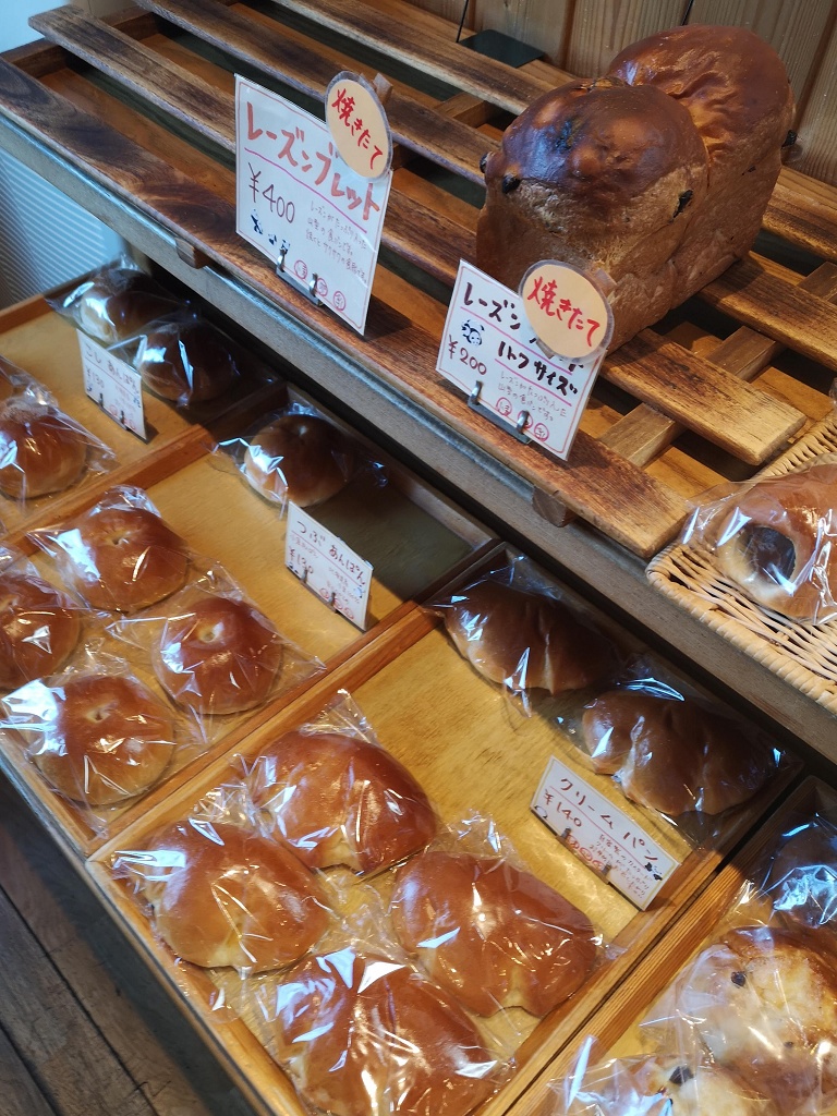 今回は焼き立ての上食パンとレーズンブレッドを購入。